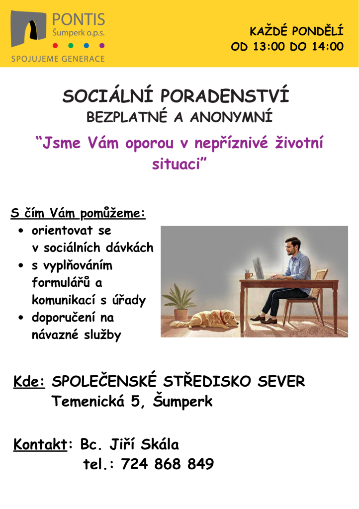 Kontaktní místo bude otevřeno každé pondělí od 13 do 14 hodin na Společenském středisku Sever, Temenická 5 a bude poskytováno bezplatně a anonymně.