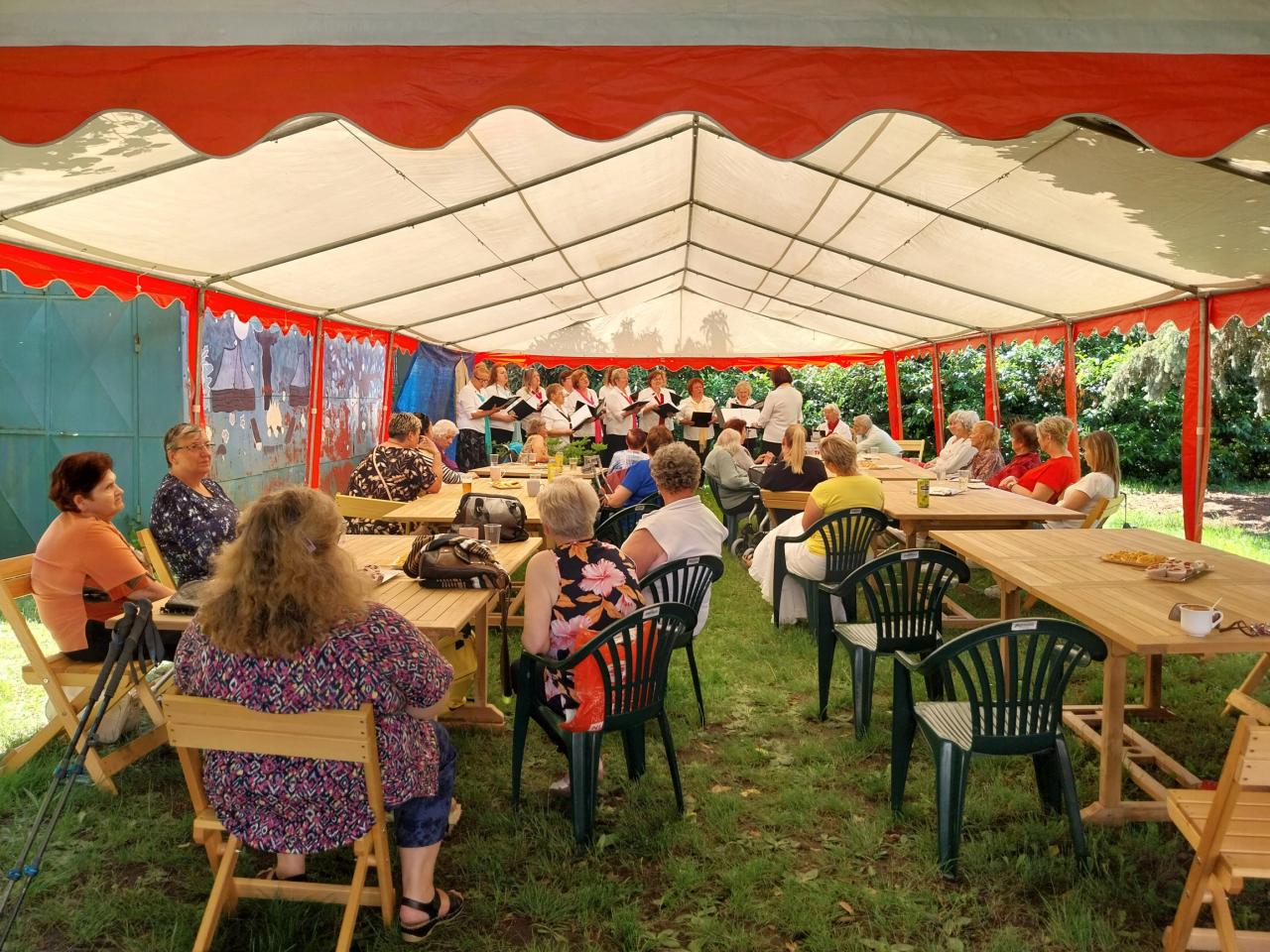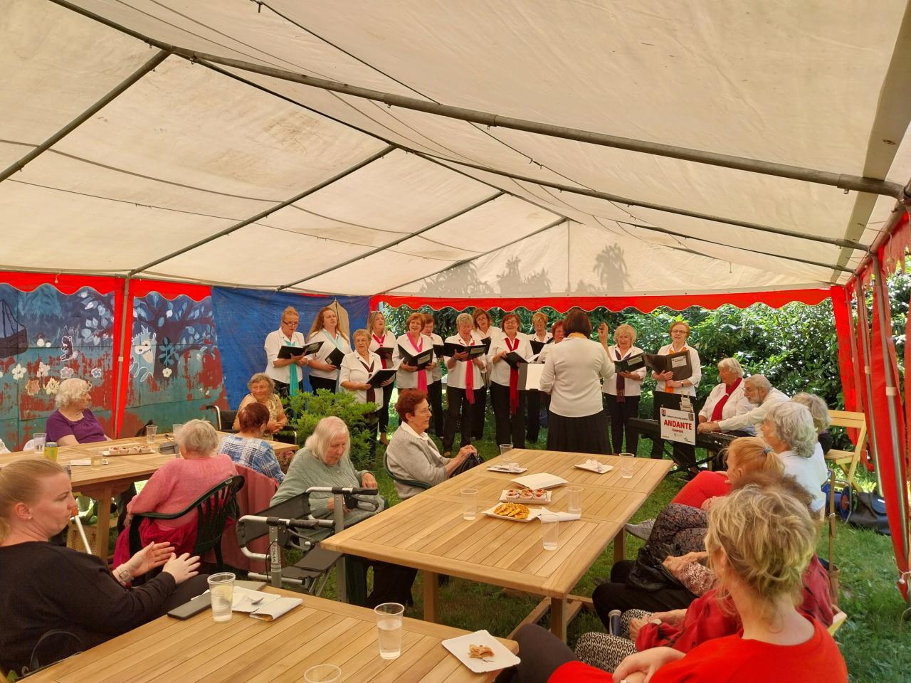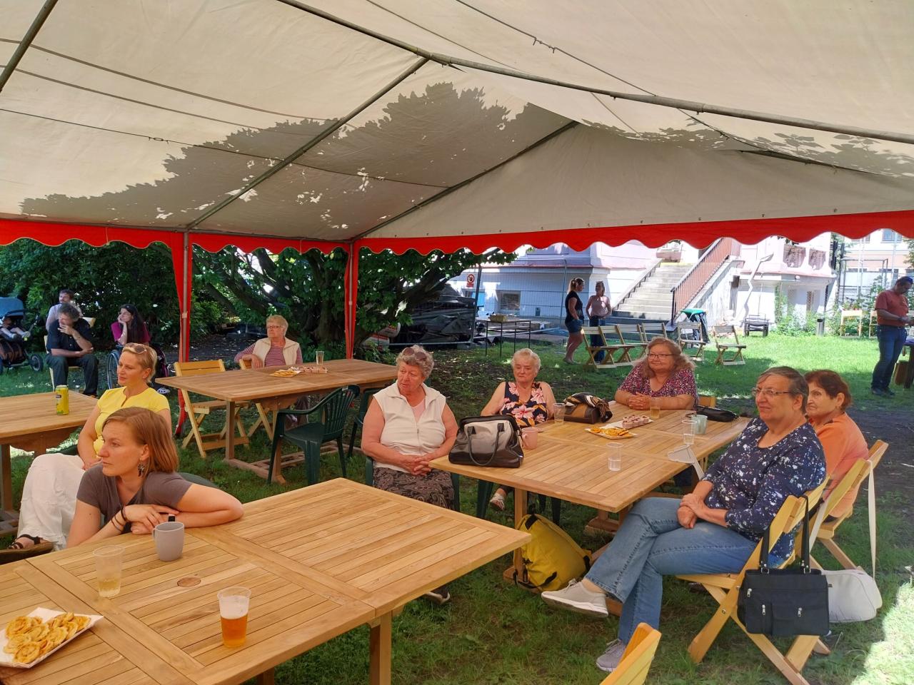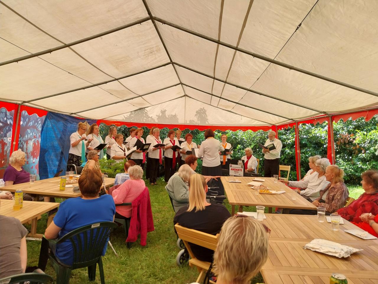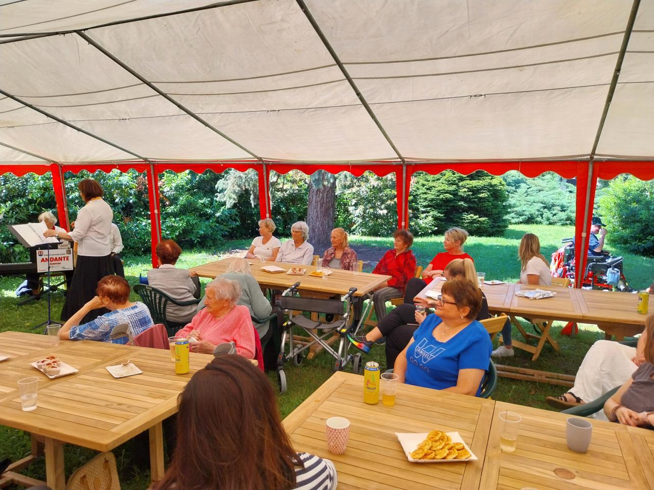 V pátek 7. 6. 2024 se krátce po obědě na zahradu u správy společnosti sešli uživatelé našich služeb a společně s Folklorním souborem Andante začali zpívat známe i méně tradiční lidové písně. Počasí nám přálo, a tak jsme všichni odcházeli se spokojeným úsměvem.