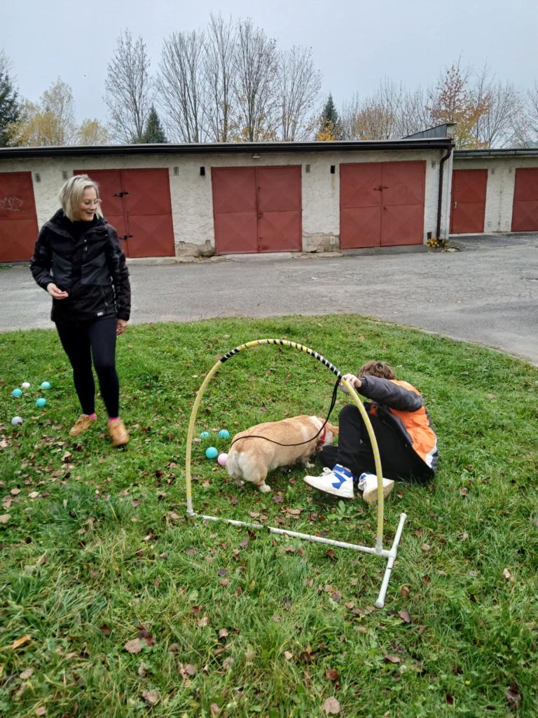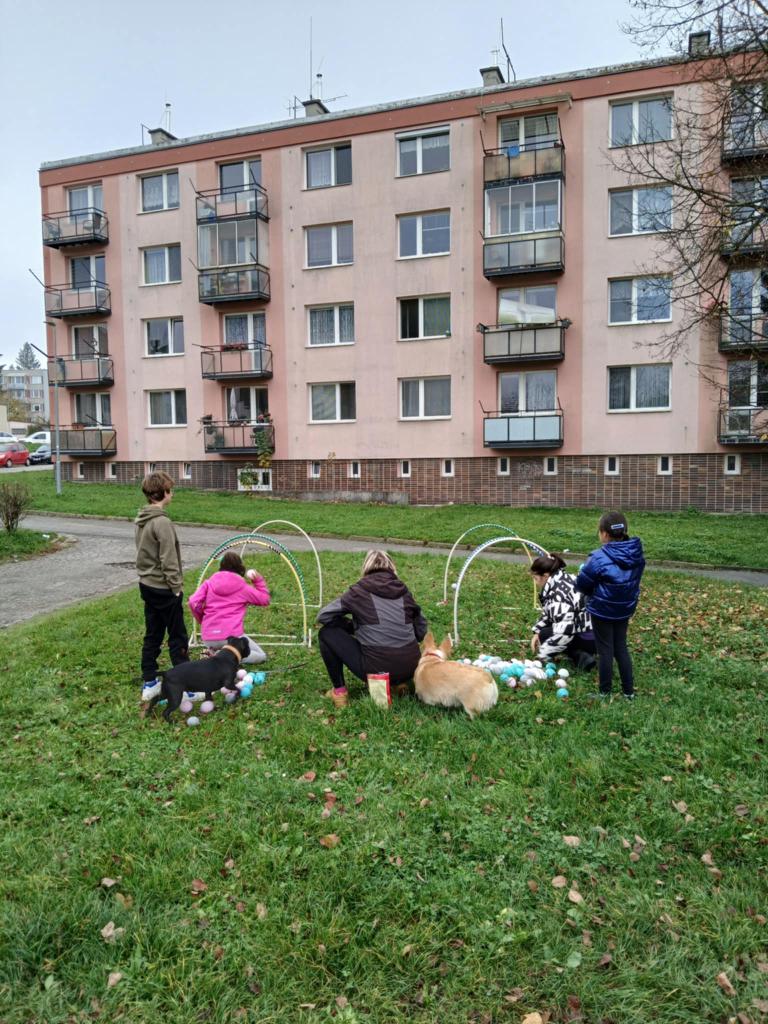 Ve středu 30. 10.  za námi na azylový dům přijela opět paní Kučerová s Miňonkou a Jackie. Dnes jsme byli venku. Děti společně s pejsky absolvovaly několik soutěžních disciplín. Byli jsme s nimi i na krátké procházce.