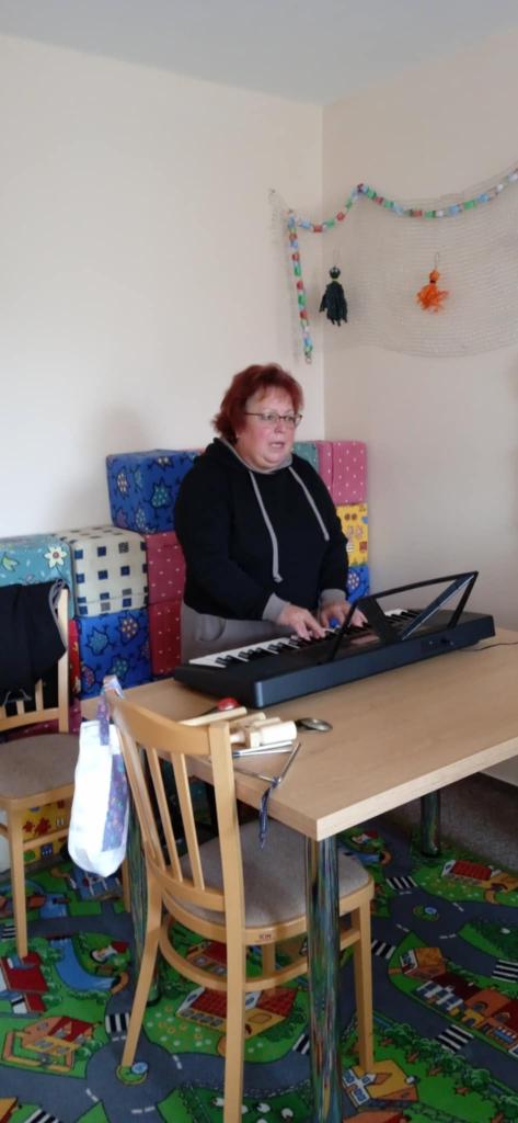 V pondělí za námi na azylový dům přijela paní Marková z folklorního souboru Andante. Zazpívala si s dětmi klasické lidové písničky, učila je, jak správně vyklepávat rytmus.
